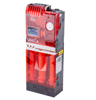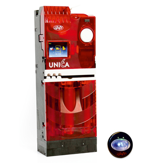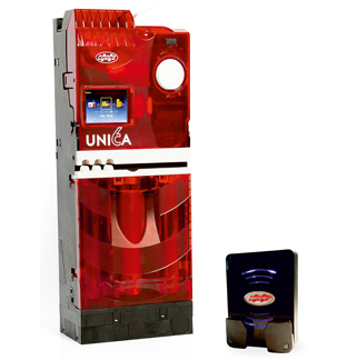 Monnayeur à 6 tubes avec système cashless intégré, unité de contrôle des données et reconnaissance des pièces. Unica est un monnayeur rendeur à 6 tubes de haute précision, créé pour incrémenter les revenus dans la gestion du distributeur automatique grâce au système cashless intégré, à une performante unité de contrôle des données et à un nouveau système de reconnaissance des monnaies. La programmation des paramètres opérationnels s’effectue avec facilité grâce au nouvel afficheur graphique en couleurs et aux ports USB intégrés.
