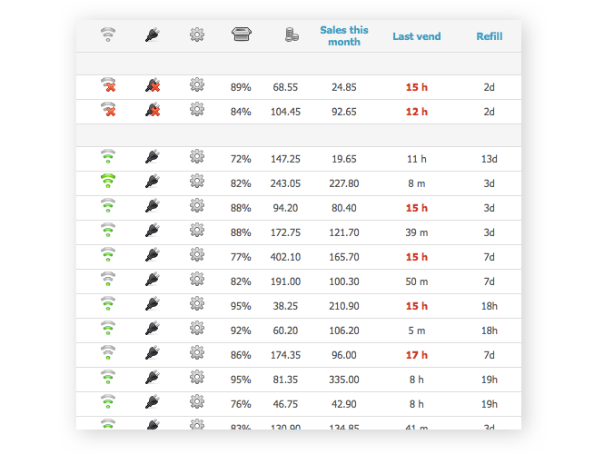 Collecte des informations en temps réel sur les stocks et les machines. Possibilité d’utiliser cette solution de gestion pour planifier les itinéraires d'entretien, réduire les temps d'arrêt des machines, éliminer les visites inutiles et réduire les dépenses de carburant.